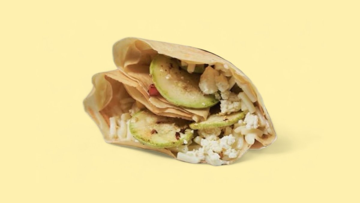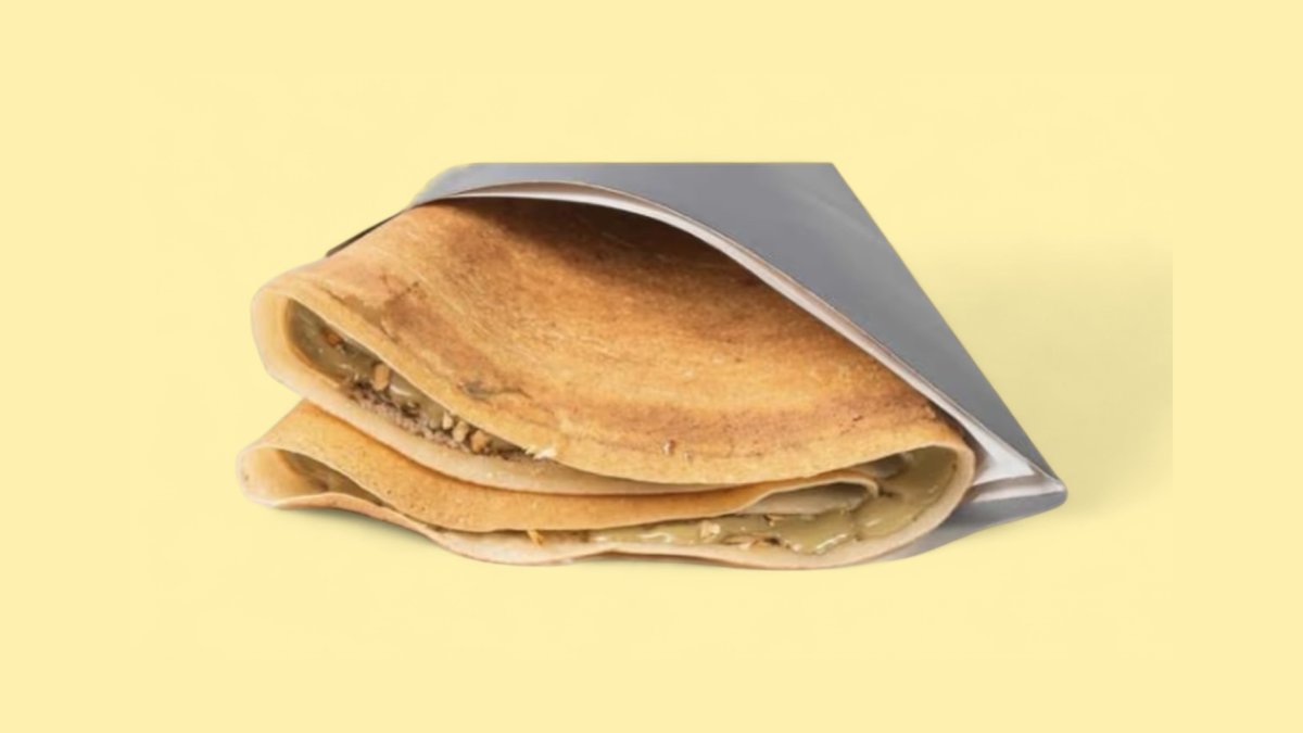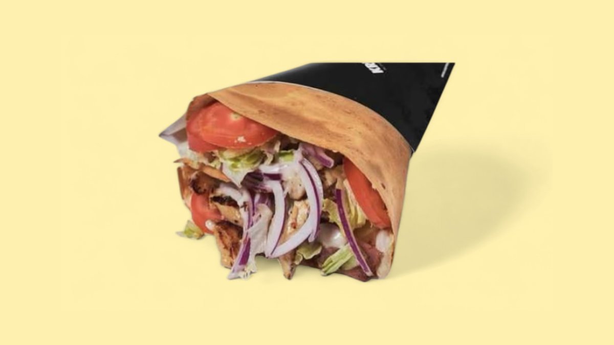 Savory teriyaki chicken, lettuce, and mayo in a warm, chewy crepe