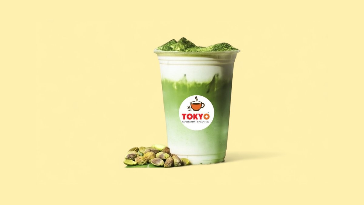 Iced milk , matcha, coffee powder, and pistachio icecream.