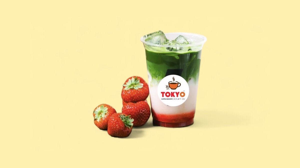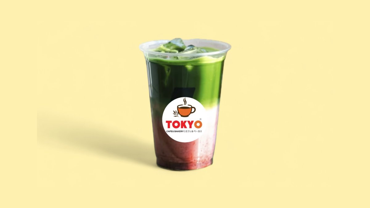 Pomengranate juice ,milk, iced matcha and vannila icecream.