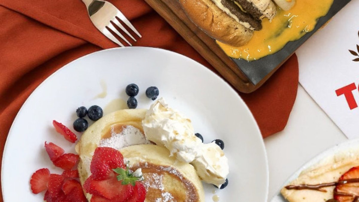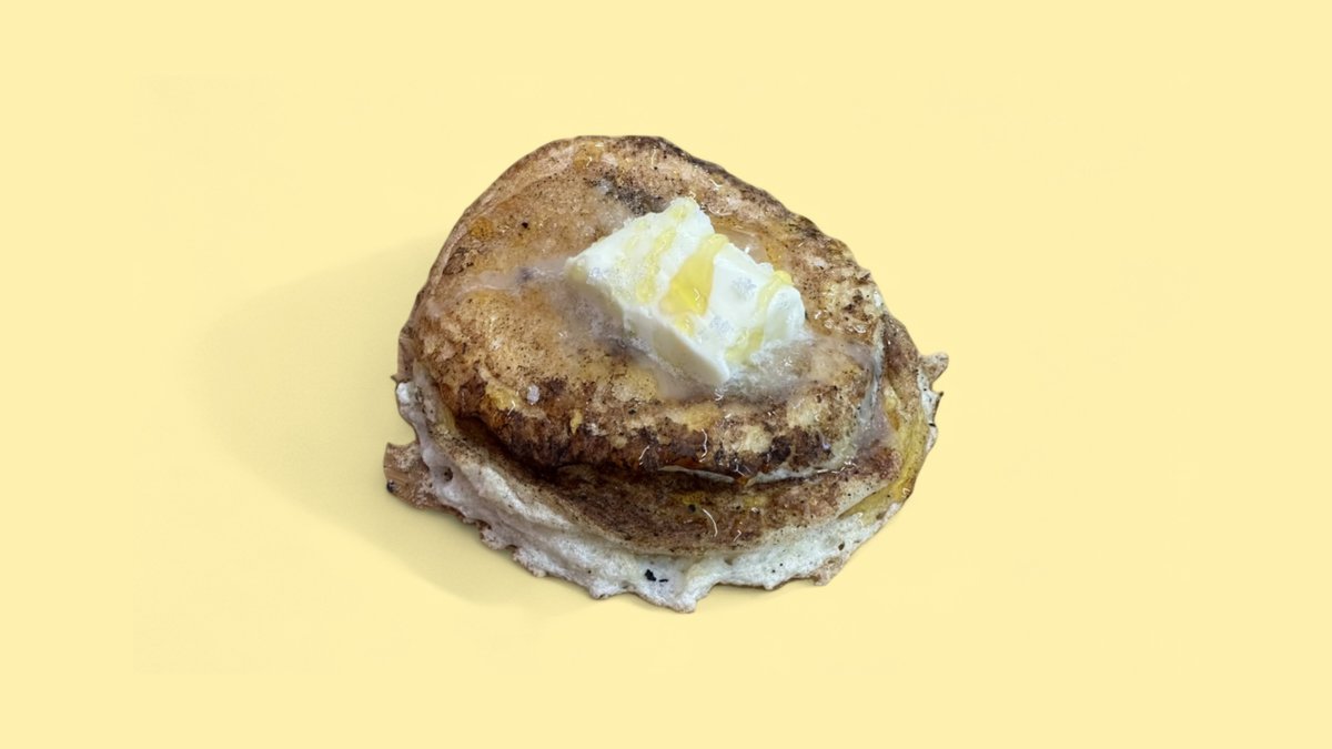Japanese souffle pancake topped with butter, caramelized sugar and honey.