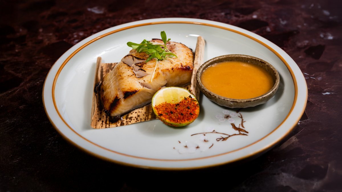 With honey and ginger glaze Yuzu salt