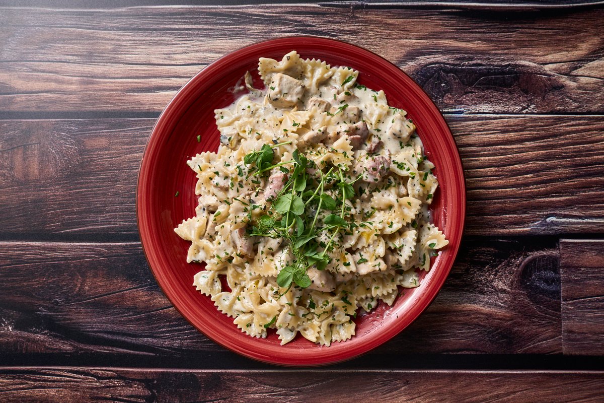Lightly sauteed with garlic a dash of white wine fresh cream seasoned to perfection topped off with fresh rucola and grana shavings