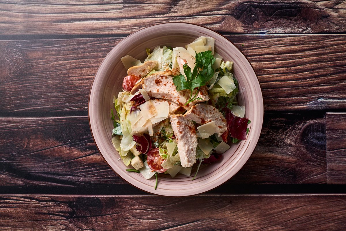 Mixed salad leaves with our in house ceaser dressing, cherry tomatoes, grana shavings seasoned spice croutons and a succulent seasoned chicken breast