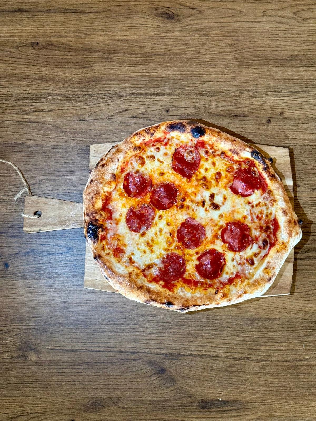 Pizza base topped off with a rich tomato sauce shredded mozzarella and the finest pepperoni cooked to perfection