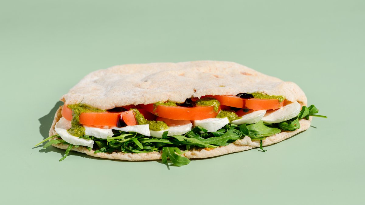 Mozzarella di Bufala, tomatoes, pesto, rucola and balsamic vinegar in a freshly baked homemade wholemeal bread Kcal537.8, Protein20.6, Carbs68, Fiber15.6, Fats20 Contains Gluten, Milk, Nuts