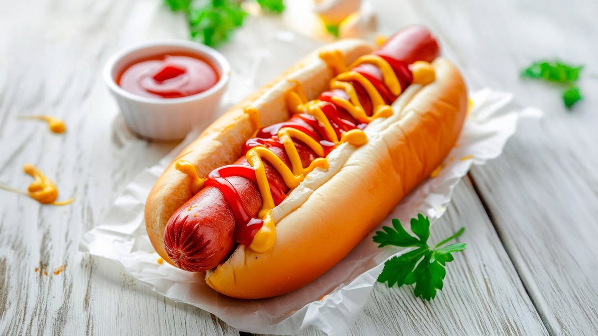 Juicy turkey or chicken hot dog served on soft brioche bread, topped with your choice of tomato ketchup, mustard, or mayonnaise. Simple, satisfying, and full of flavor. Meal Deal Includes: 🍟 One portion of skin-on fries 🥤 One soft drink Everything you need in one great-value meal. Allergens: Gluten, dairy, egg, celery, sesame seeds, nuts.