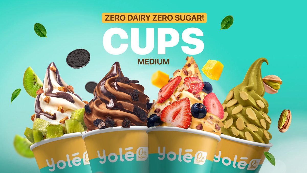 Enjoy Yolé box available in regular box 0,6 litre or large box 1 litre of Zero Sugar Added Frozen Yoghurt or Zero Sugar Added Zero Dairy Ice Creams with your favorite toppings served in pots.
