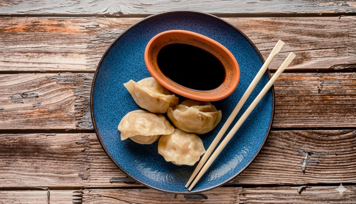 Steamed dumplings with fresh mixed vegetables, corriander and eggs. Served with soya sauce.