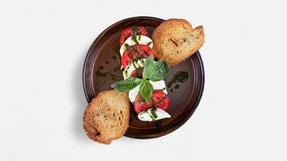 Fresh tomato, mozzarella di bufala, basil pesto & crostini bread.