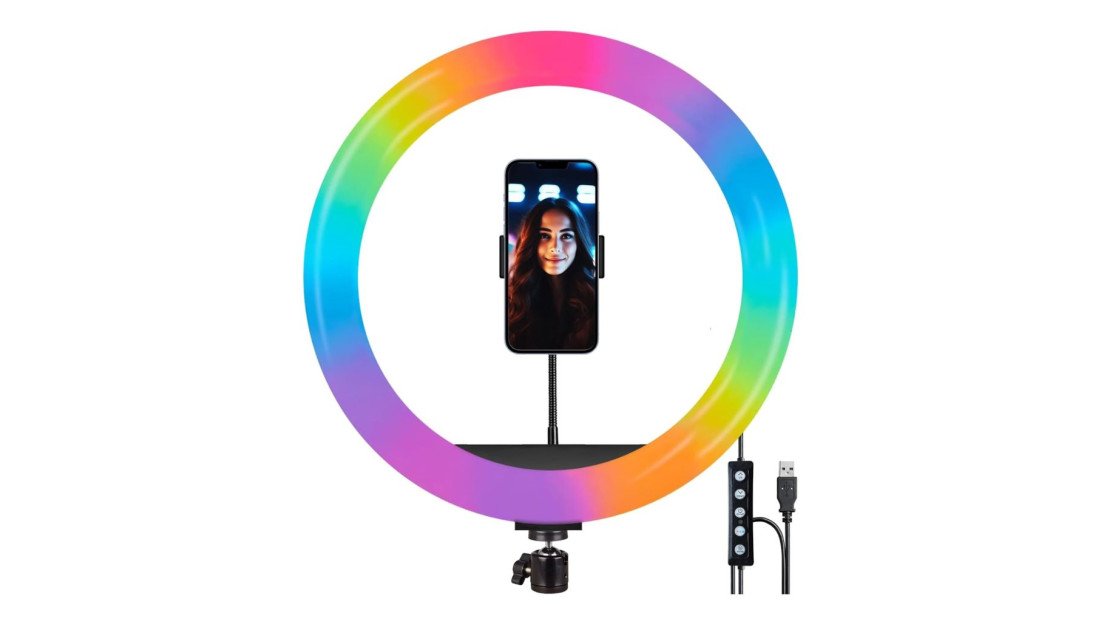 AllPress 12-Inch RGB LED Ring Light with Phone Holder – 7 Colors & 8 RGB Modes