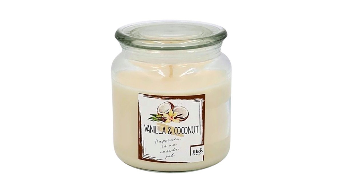 Ilkos Glass Candle Vanilla Coconut 60hrs