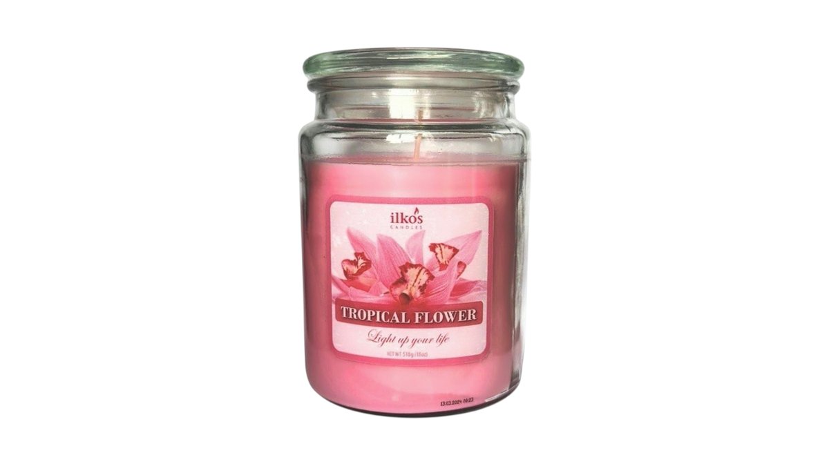 Ilkos Glass Candle Tropical Flower 90hrs