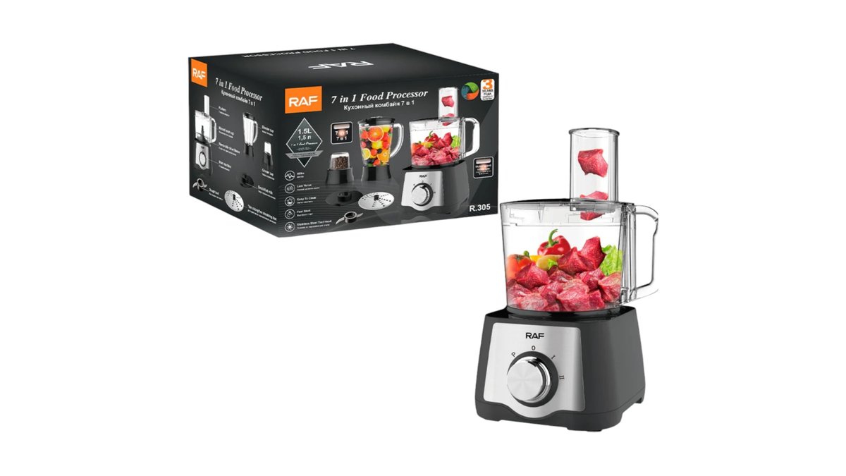 RAF 7-in-1 Food Processor | 600W | 1.5L Capacity | Multiple Blade Attachments | High-Speed Motor