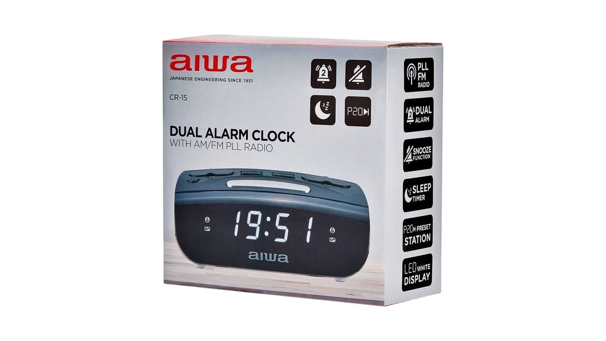 Aiwa Dual Alarm Clock with AM/FM PLL Radio Model CR-15
