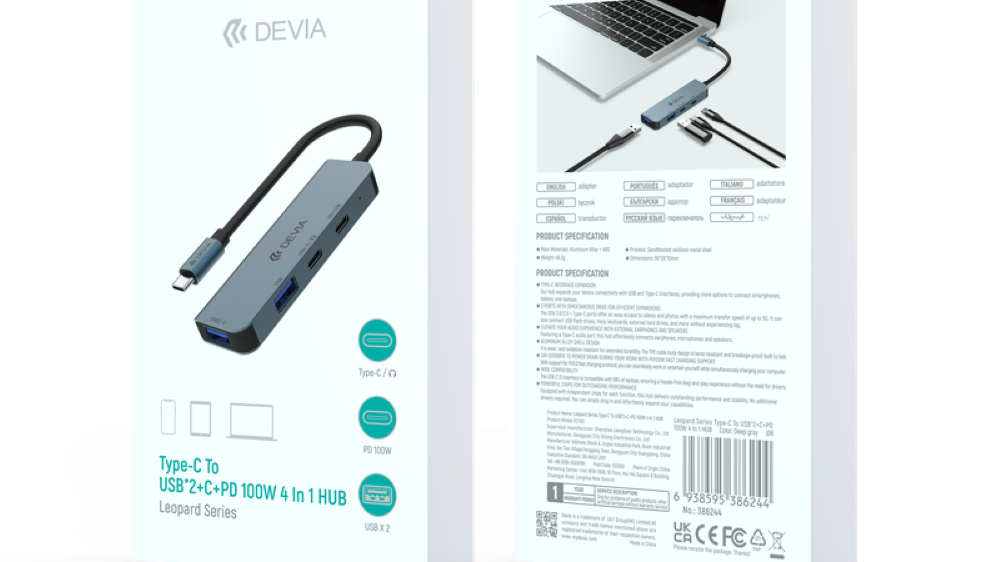 4 in 1 Hub Type C to USB*2+C+PD 100w