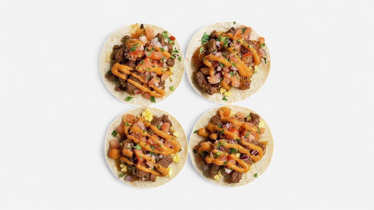 minilefser med marinert biffkjøtt,baconmarmelade,chipotlemajo,pico de gallo,og tortillachip