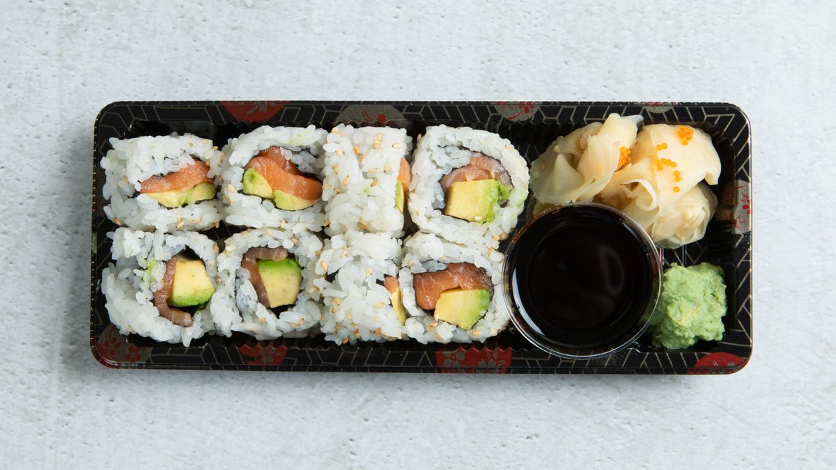 Laks, avokado, sesamfrø.