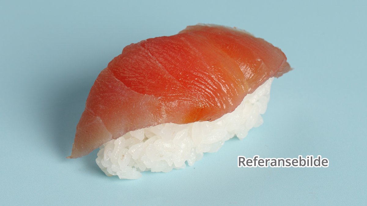 7 nigiri: 3 laks,1 kveite,1 tunfisk 1 scampi og 6 biter nr.25