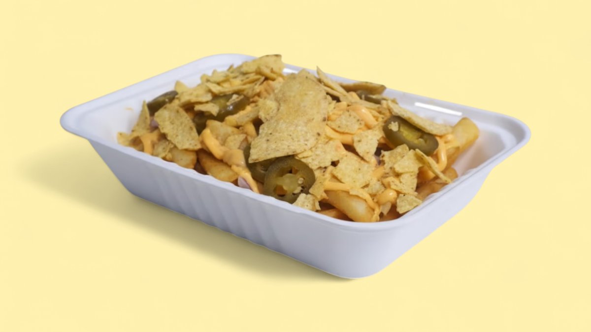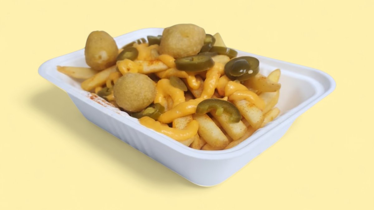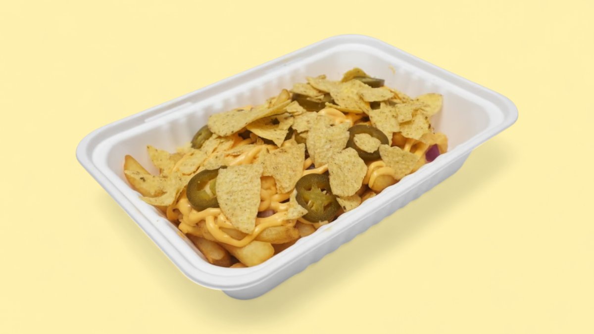 Fries, nacho-ost, jalapenos, løk og spicy mayo saus.