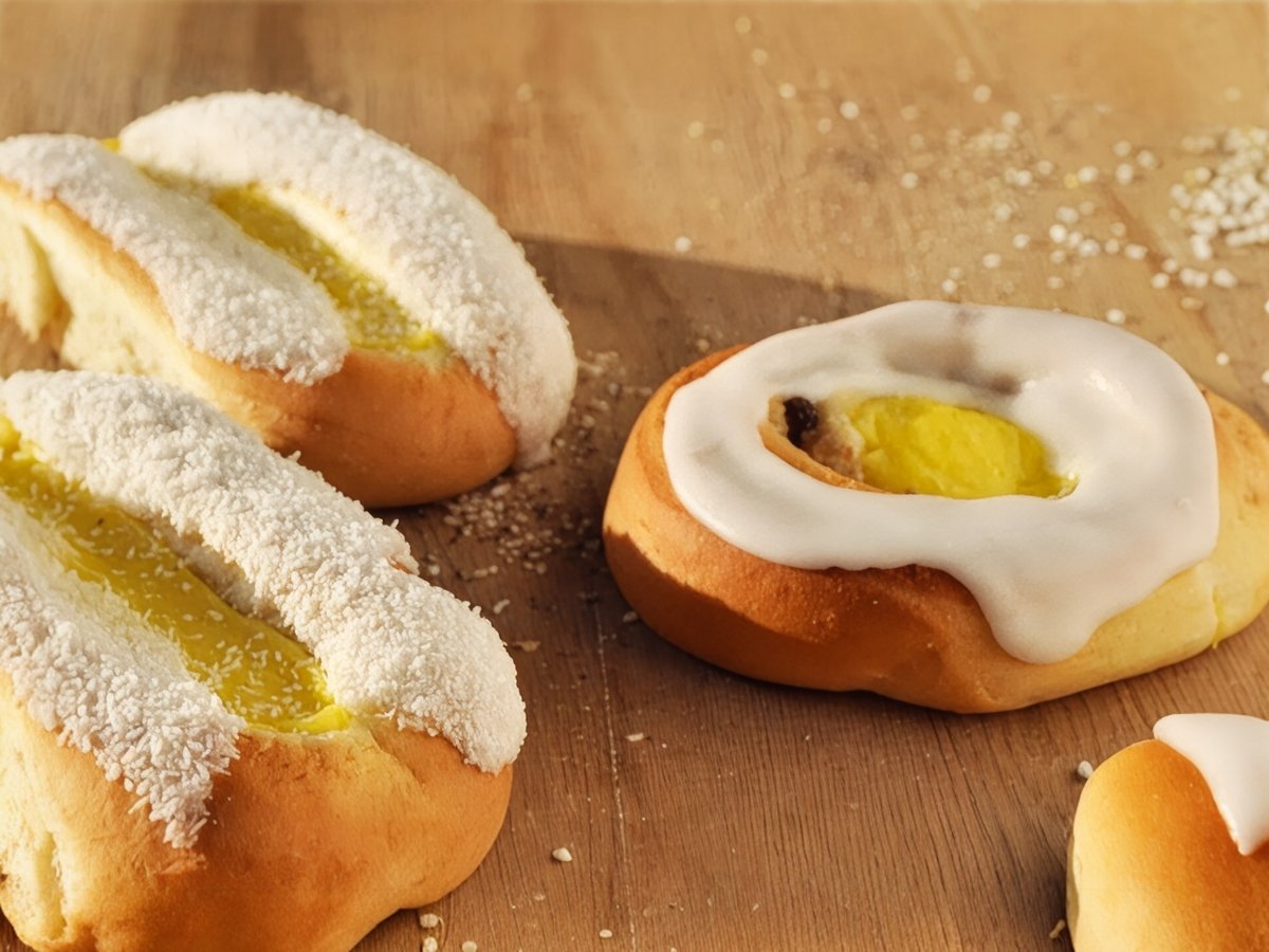 Snurr med kanel, mandelfyll, rosiner og vaniljekrem