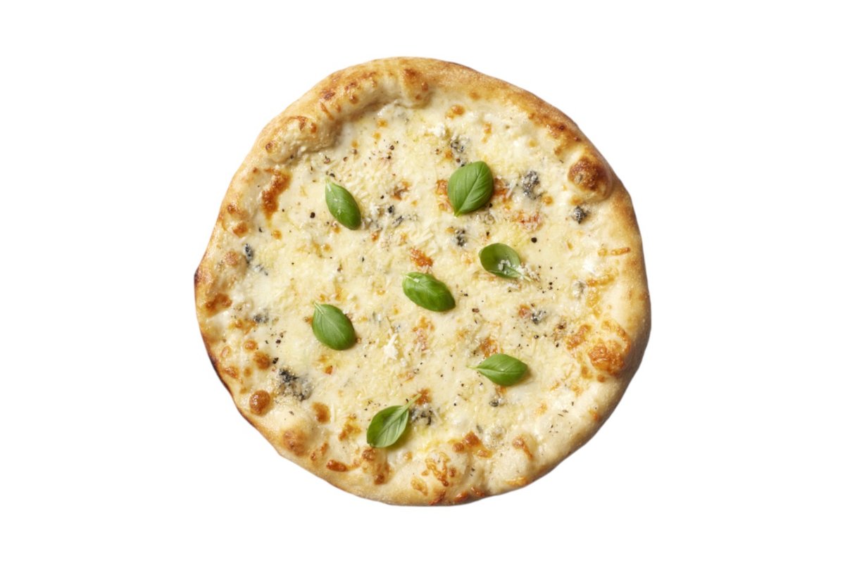 Ostepizza med fem forskjellige oster. Hvit saus, mozzarella, cheddar, blåmuggost og fetaost. Toppes med grana padano, valnøtter, honning, fersk basilikum og nykvernet pepper.
