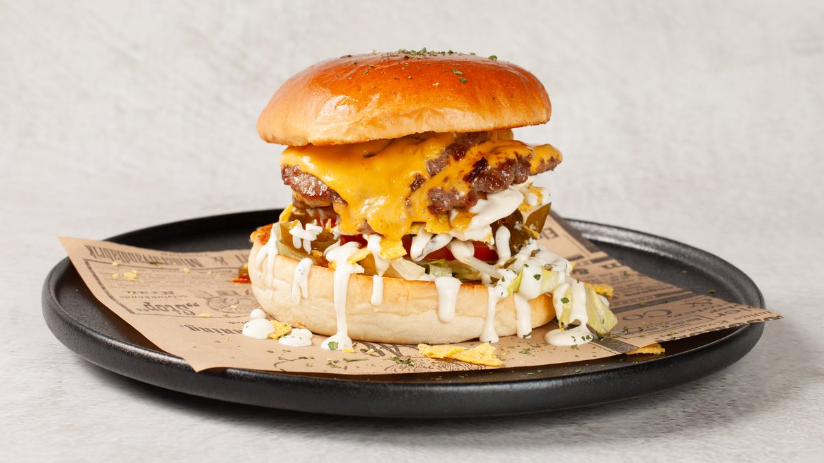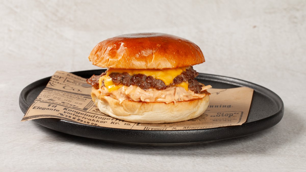 Vår burger er en smakfull opplevelse med høykvalitets, rent kvernet oksekjøtt som er pressgrillet til perfeksjon. En saftig og velsmakende godbit som tilfredsstiller dine burgerdrømmer.