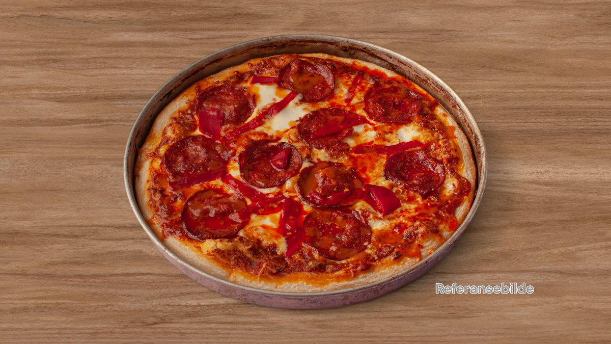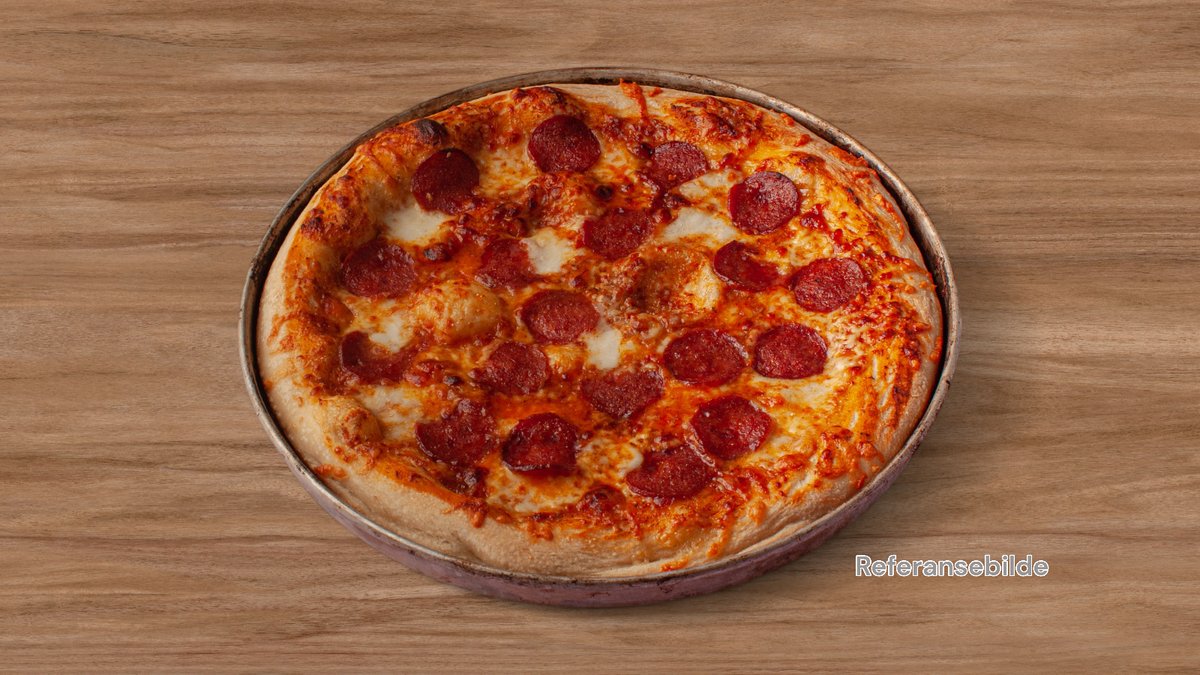 En favoritt pizza med san marzano-tomatsaus, fior di latte-mozzarella, pepperoni og oregano.