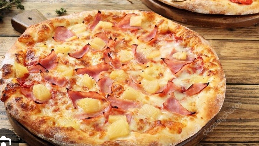 San marzano, fior de latte mozzarella, cremini mushrooms, ham, pineapple