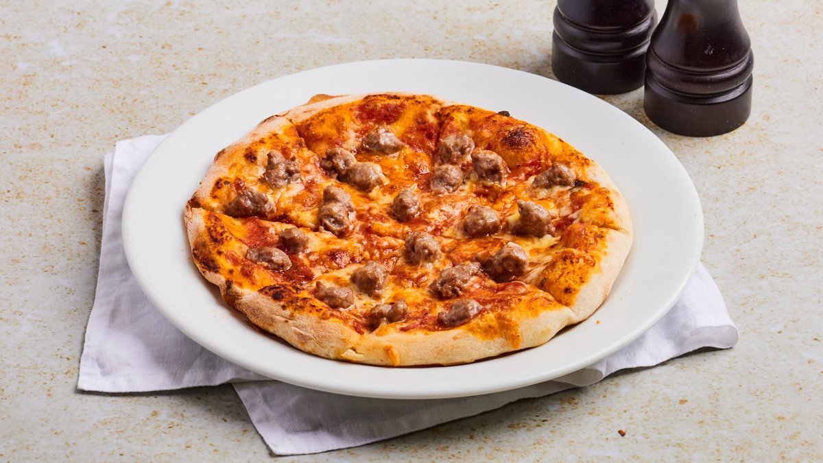 Mozzarella, piccantepølse, peppardew og rødløk Det kan ikke legges til ingredienser til retten.