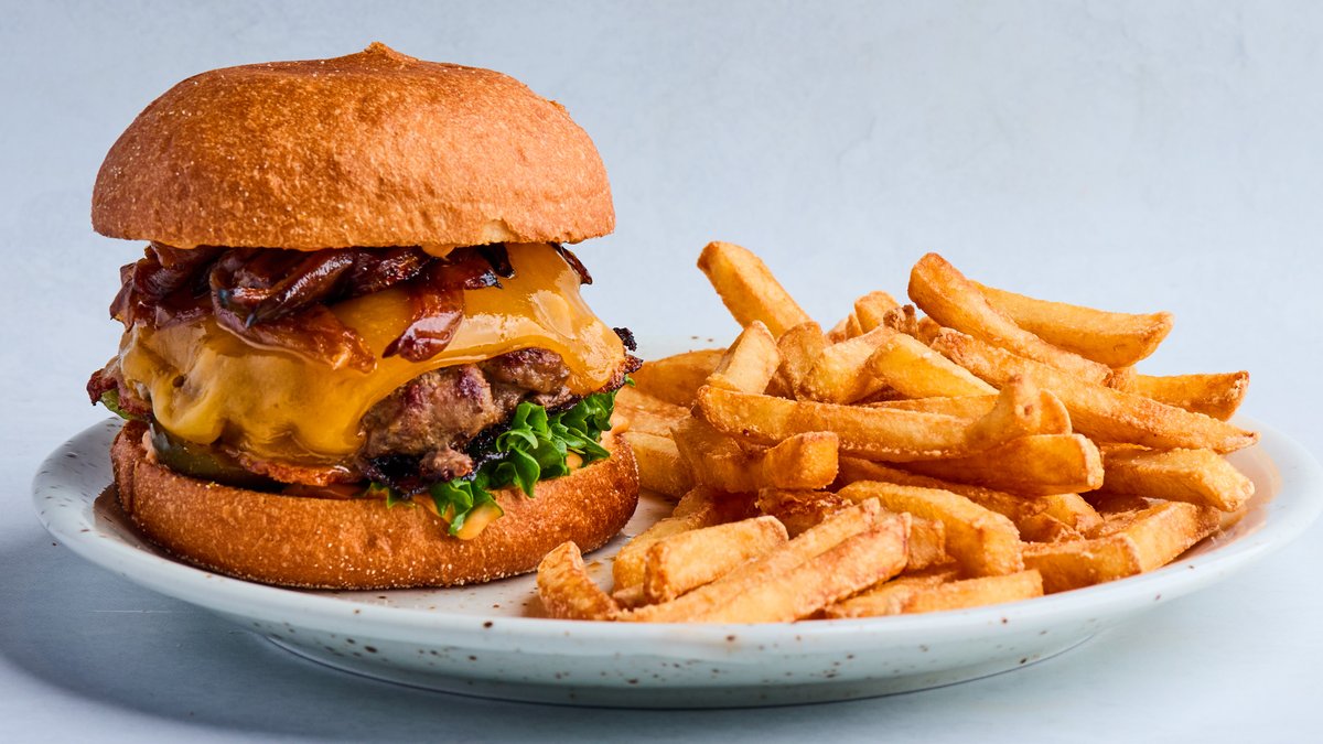 160g burger med hamburgerdressing, bacon, fritert løk, sprø salat, O'Learys signature BBQ-saus og cheddarost.