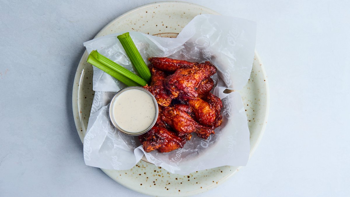 Friterte kyllingvinger dekket med O'Learys buffalosaus. Serveres med kremet blue cheese dressing og selleri.