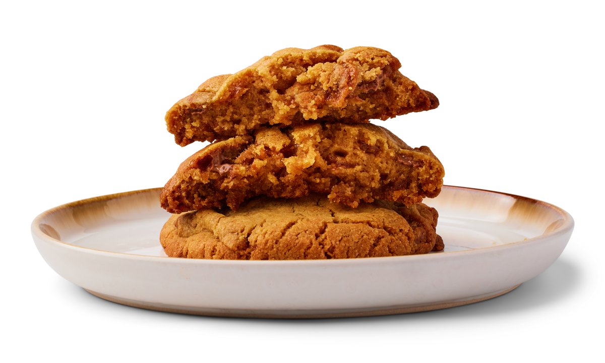 Cookie med melkesjokolade, belgisk stroopwafel og karamell.