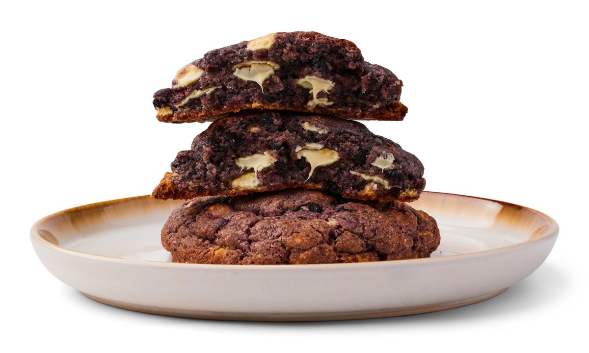 Cookie med hvit sjokolade, ferskt sitronskall og ekte blåbær.
