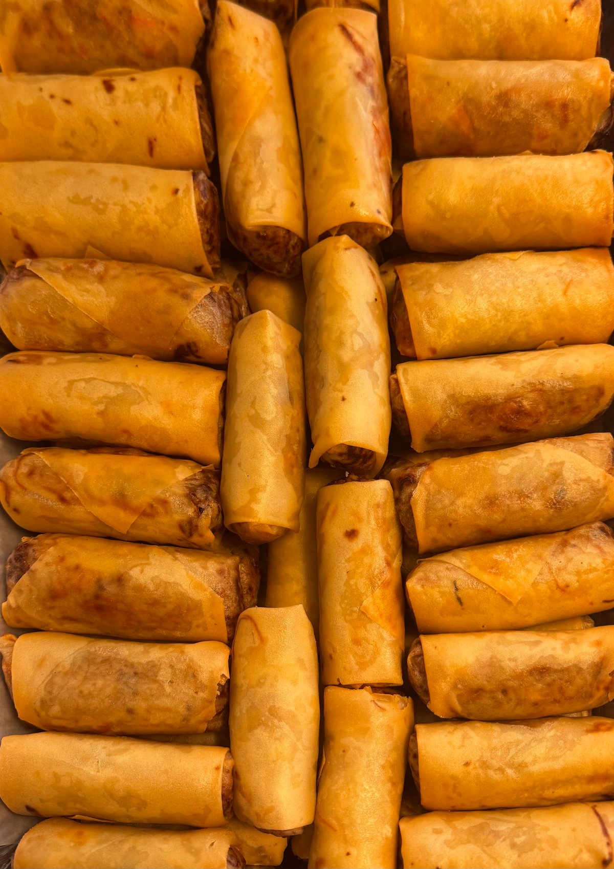 15 vårruller,5 stk.innbakt kylling,5 stk. grill nakkekoteletter,3 chili saus,3 porsjoner ris.