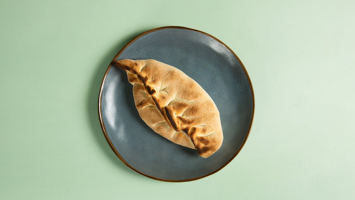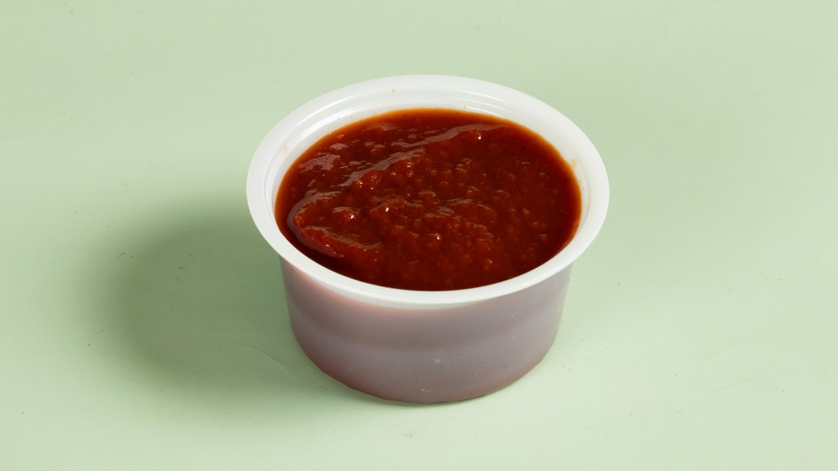 Tomatsaus, mozzarella, marinert biffkjøtt, løk, salat og hvitløksdressing.