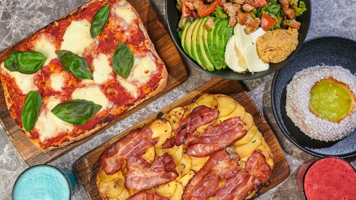 Stort utvalg av digge retter som pizza, burger og sandwich!