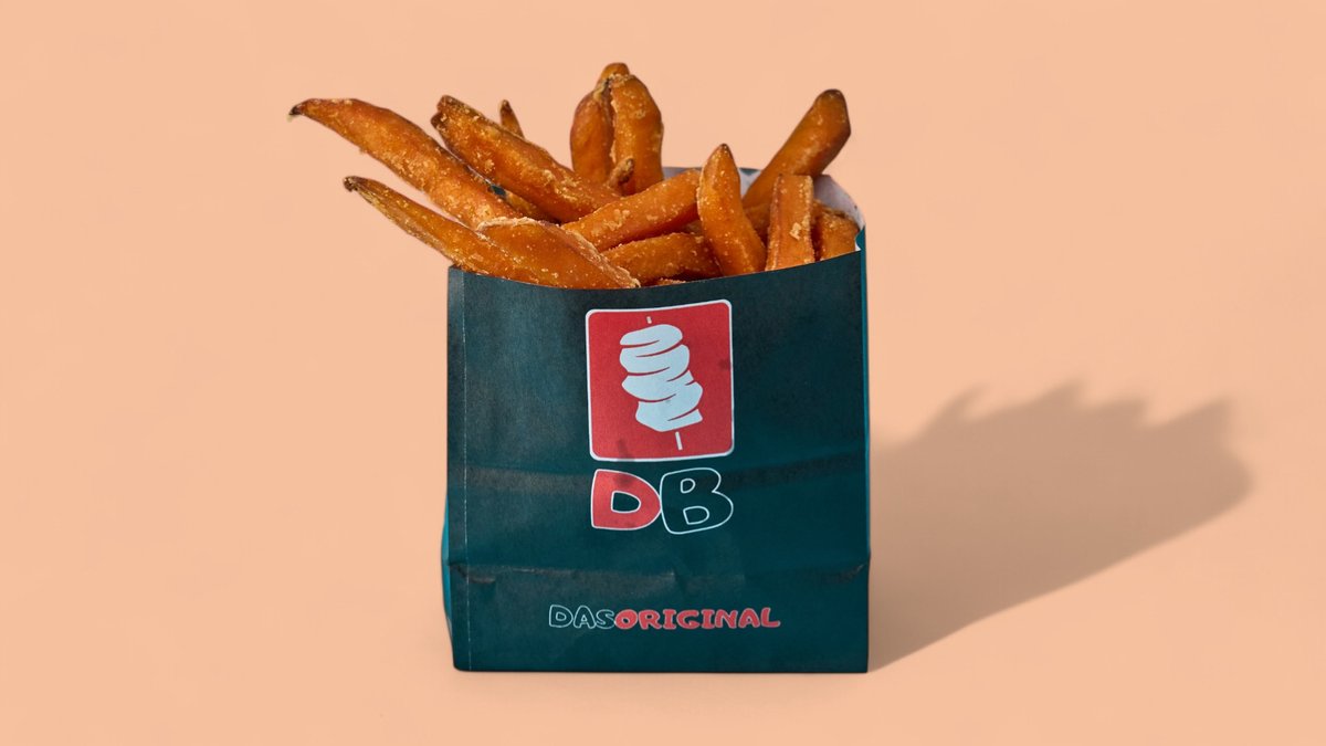 DB Original Berliner med fries, valgfri dip og valgfri 0,33l drikke.