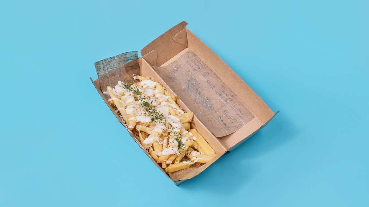Pommes frites med aioli, parmesan og persille.