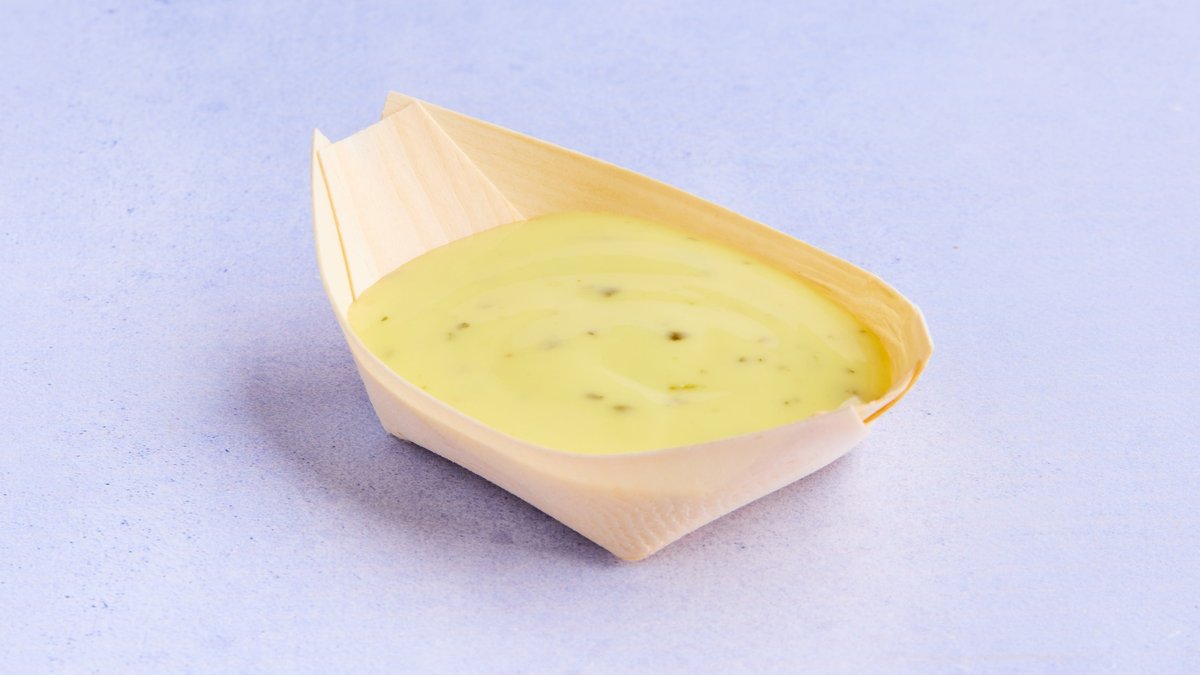 Salat med kylling, reker, mais, agurk, tomat, paprika, oliven, ananas og dressing. Velg ønsket dressing.