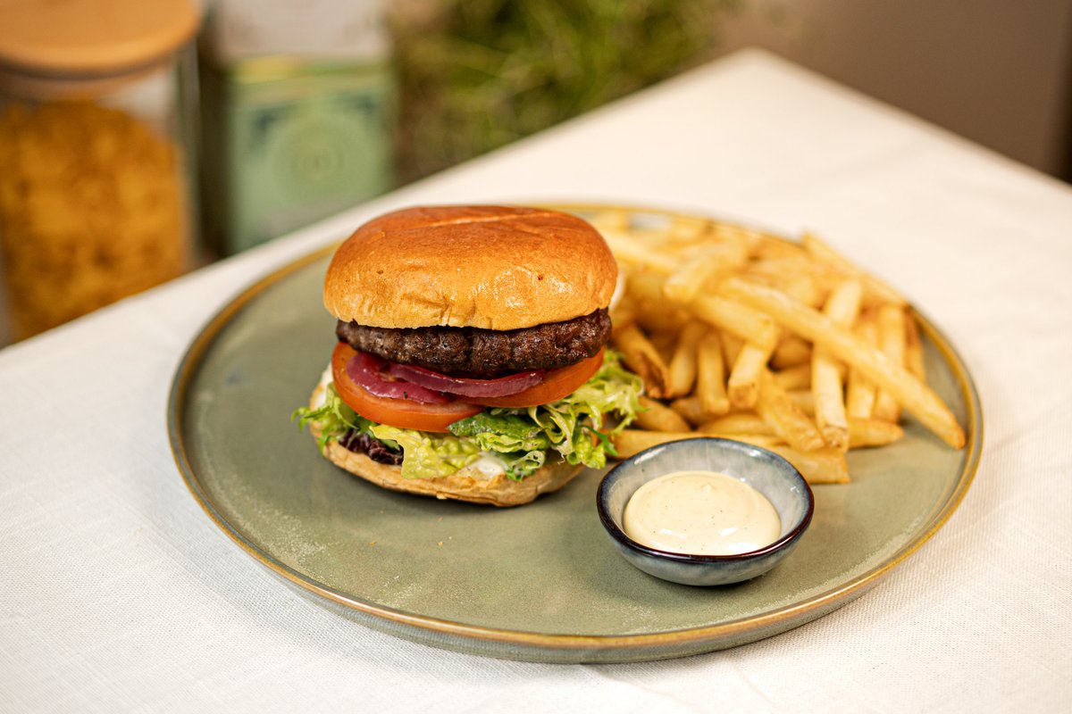 Våre burgere serveres med fries, søtpotetfries eller saltbakte småpoteter og aioli.