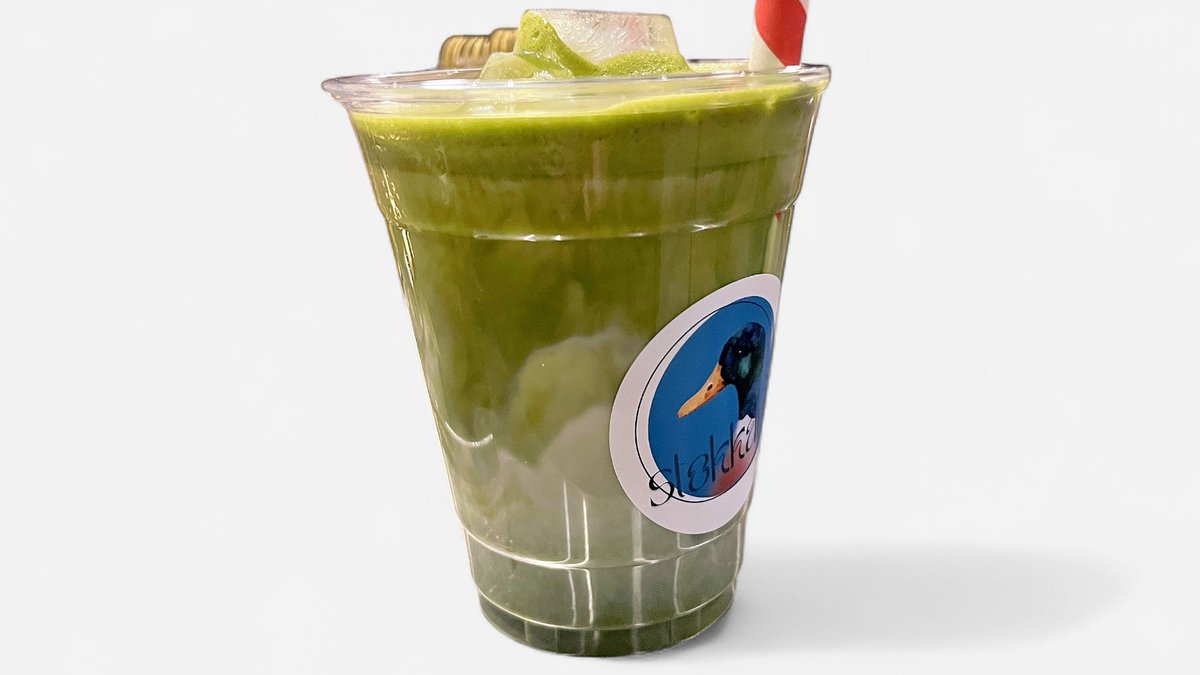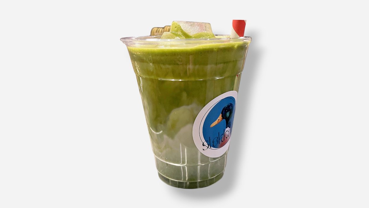 Matcha Latte tilsatt brunt sukker for smak og utseende