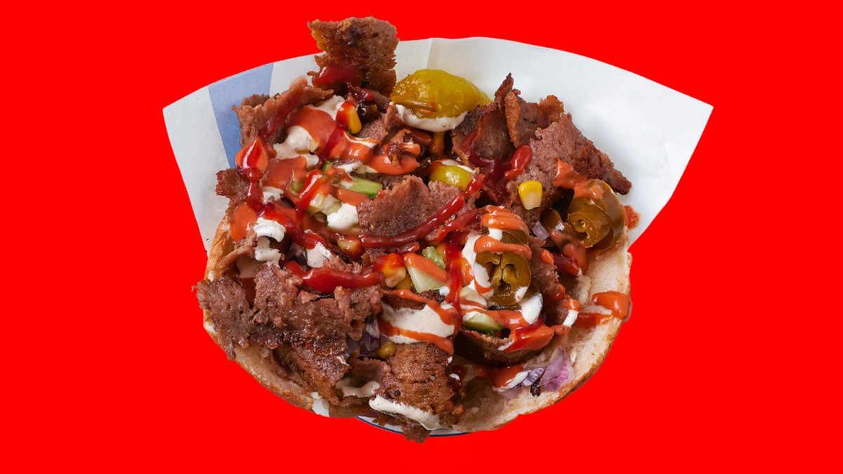 Saftig dönerkjøtt toppet med fire smeltede oster, husets kryddersmør, friske grønnsaker, Salat, Mais, Agurk og Løk. Toppes med Husets Sauser.