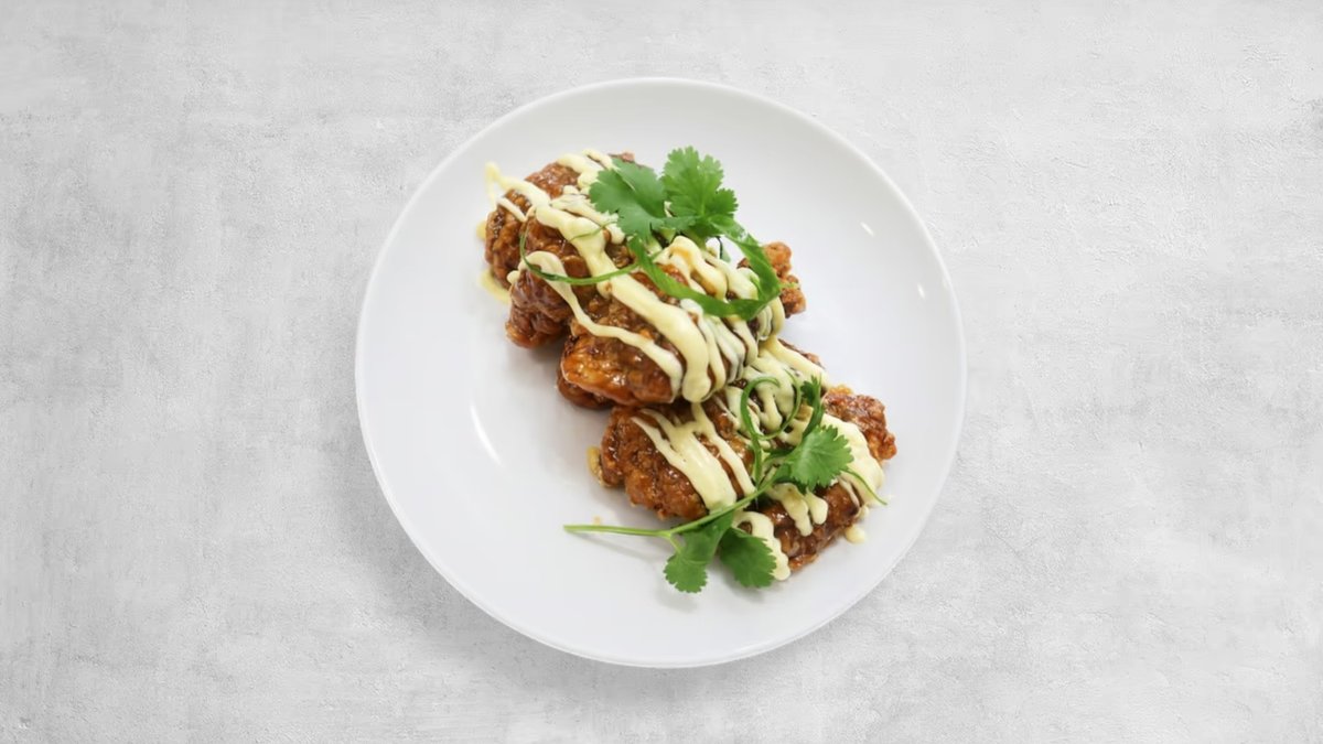 Sticky Tamarind, Black Pepper and Jaggery Glaze with Coriander & Maple Mayo Drizzle