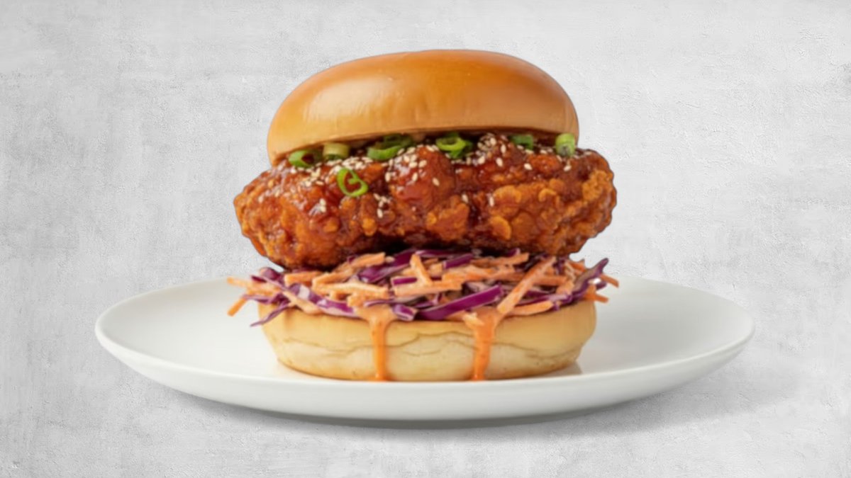 Crispy Fried Chicken, Dipped in Gochujang Peanut Butter, Chilli Lime Mayo, Fresh Asian Slaw, MSG Pickle