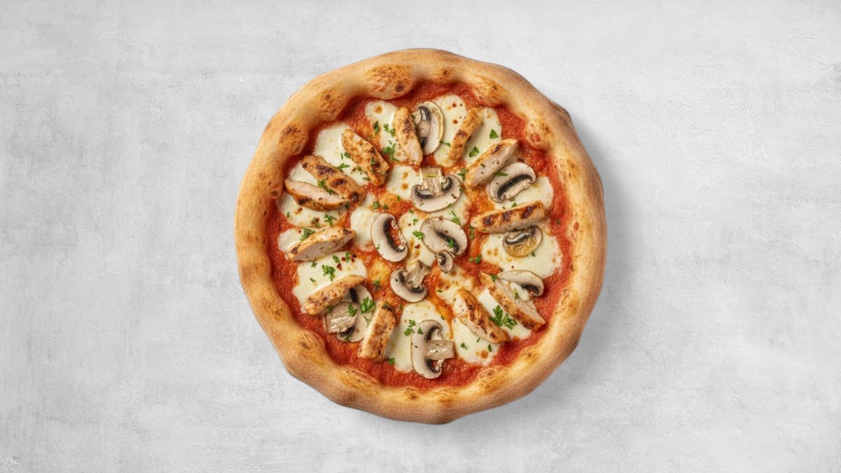 Mozzarella, BBQ Chichen, Onion, Mushroom, Truffle oil Pizza Sauce