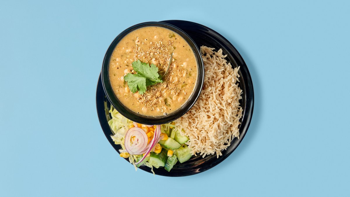 Serveres med ris, salat og 1 stk. naan.