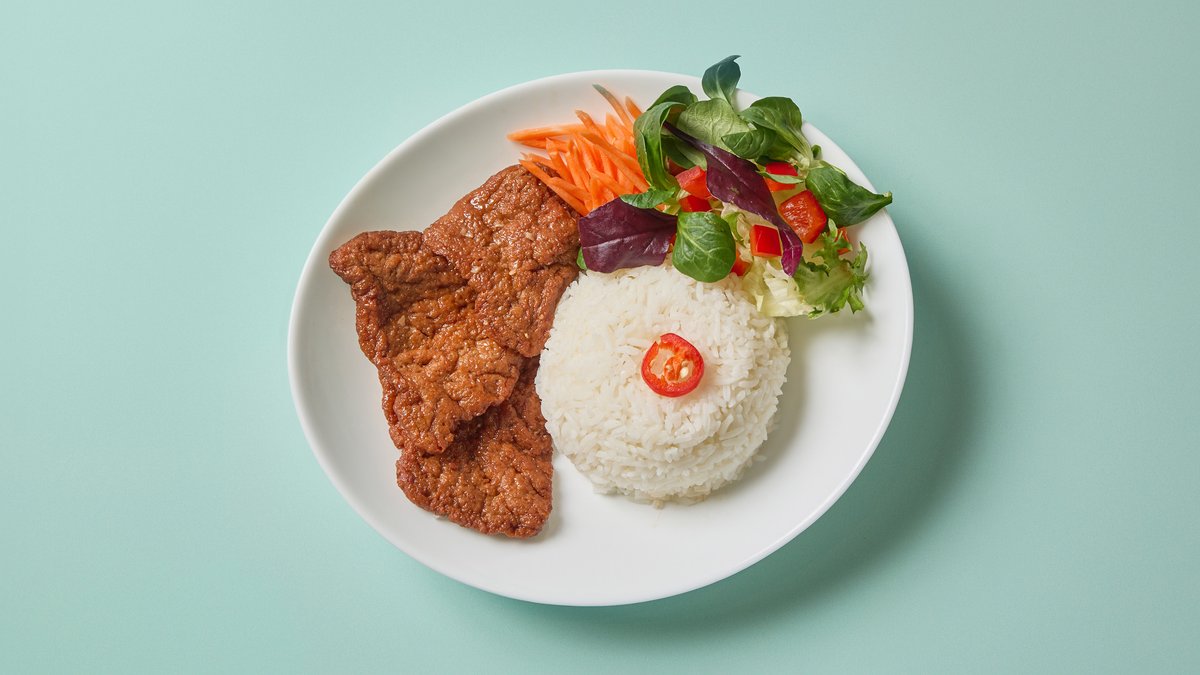 Spicy, sursøte og saftige skiver vegetarkjøtt glaserr i vår perfekt balanserte saus. Serveres med sprø og friske grønnsaker med duftende jasminris. En smaksrik favoritt.