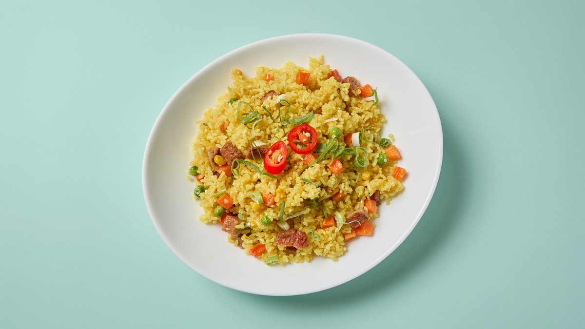 Perfekt stekt ris vendt i vår egen woksaus, blandet med saftig vegetarkjøtt og sprøstekte grønnsaker. En enkel klassiker full av smak.