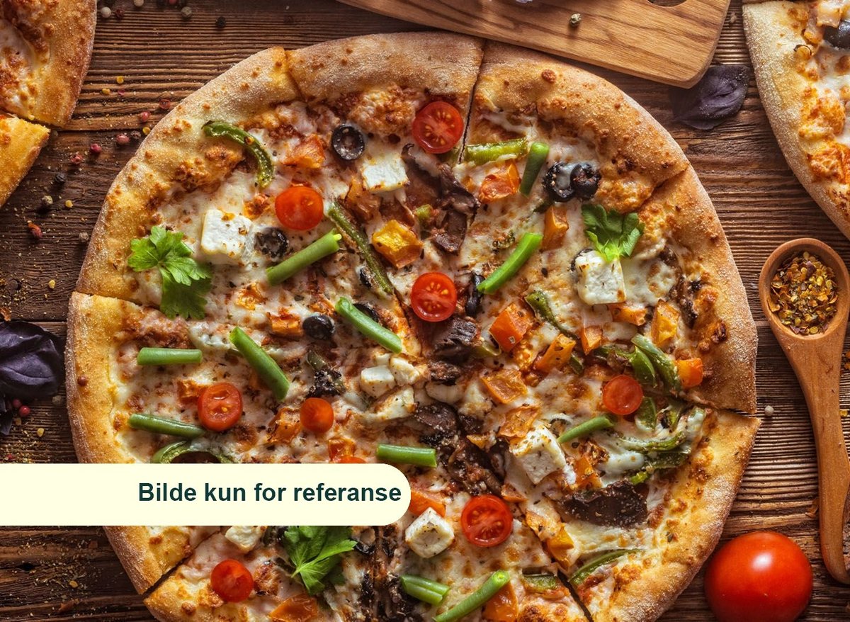 Parmesan, døner, paprika, sopp, oliven. Til og med et velgfrit dressing ; )