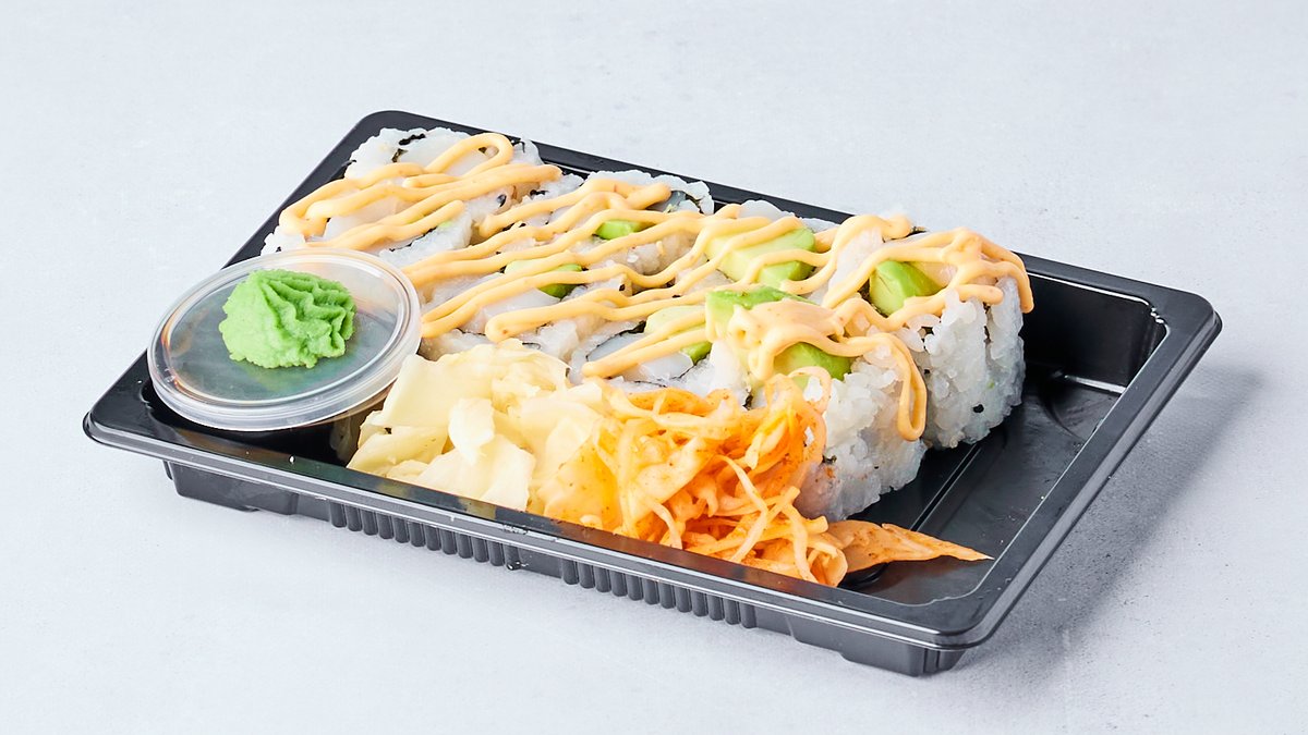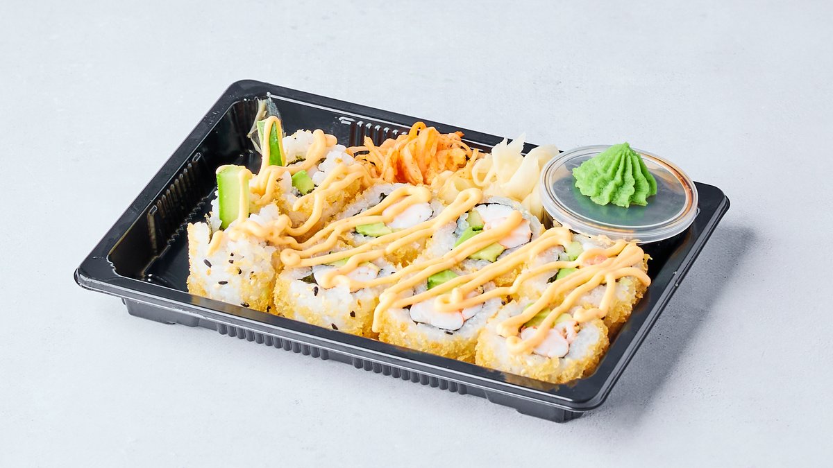 8 biter. Maki med fritert krabbekjøtt, avocado, chilimajones
